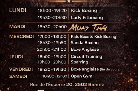 Nous proposons la boxe, le coaching privé, le circuit training et le Lady Fit Boxe. Des entraînements complets mêlant cardio, renforcement et technique, adaptés à tous les niveaux et à tous les objectifs.